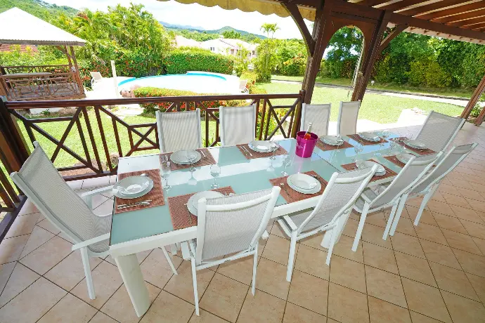 À l'entrée de la charmante commune éponyme du Diamant, nichée au cœur d'un quartier résidentiel paisible, La Villa Diamant s'épanouit sous le doux soleil du Sud Caraïbe de la Martinique. Son élégance intemporelle se révèle à travers une architecture créole harmonieuse, parfaitement intégrée à un cadre naturel d'une beauté saisissante. Cette villa incarne l'art de vivre antillais, offrant un refuge idyllique où le confort moderne se marie avec le charme traditionnel.