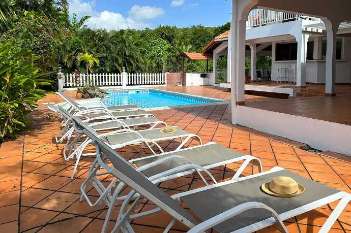 La Villa Marliv se positionne sur la bordure de la côte Caraïbe, dans le Grand Sud de l'île. Située à quelques minutes du bourg de Sainte-Luce et à 500m des plages, elle vous place à proximité de toutes les commodités. Cette superbe villa de standing ou le bien-être côtoie la quiétude, vous fait bénéficier d'un équipement de qualité. Près de la piscine, installé confortablement sur la grande terrasse périphérique, vous admirez la végétation luxuriante du verger. Idéalement situé, vous partez à la découverte d'une Martinique haute en couleurs et en richesses.
